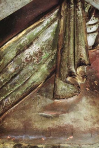 「脱活乾漆像」では凌ぎある細かい表現は、毀れやすい材質の「漆」使用のため出来ません。